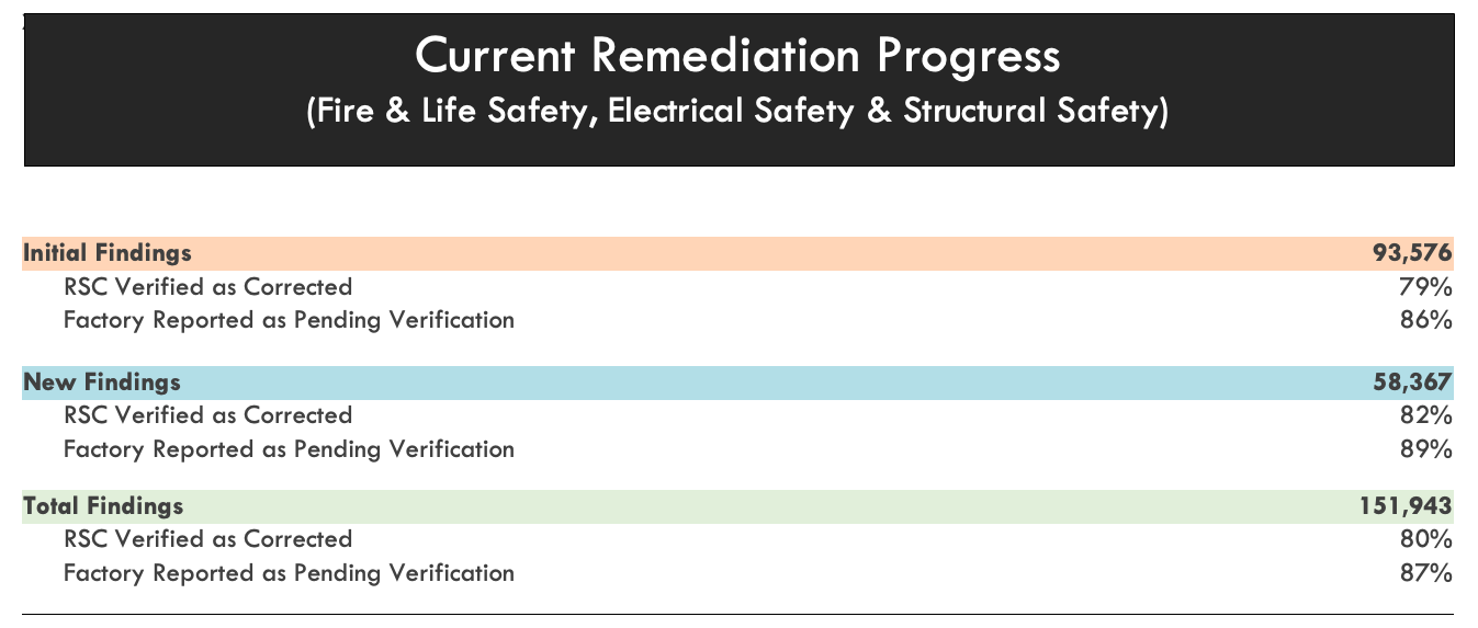 Starting in January 2026, these reports are produced quarterly by the RSC, following a decision by the Accord Steering Committee to revise the methodology for calculating factory remediation progress rates and to provide a breakdown of progress on specific, high-impact safety findings.
